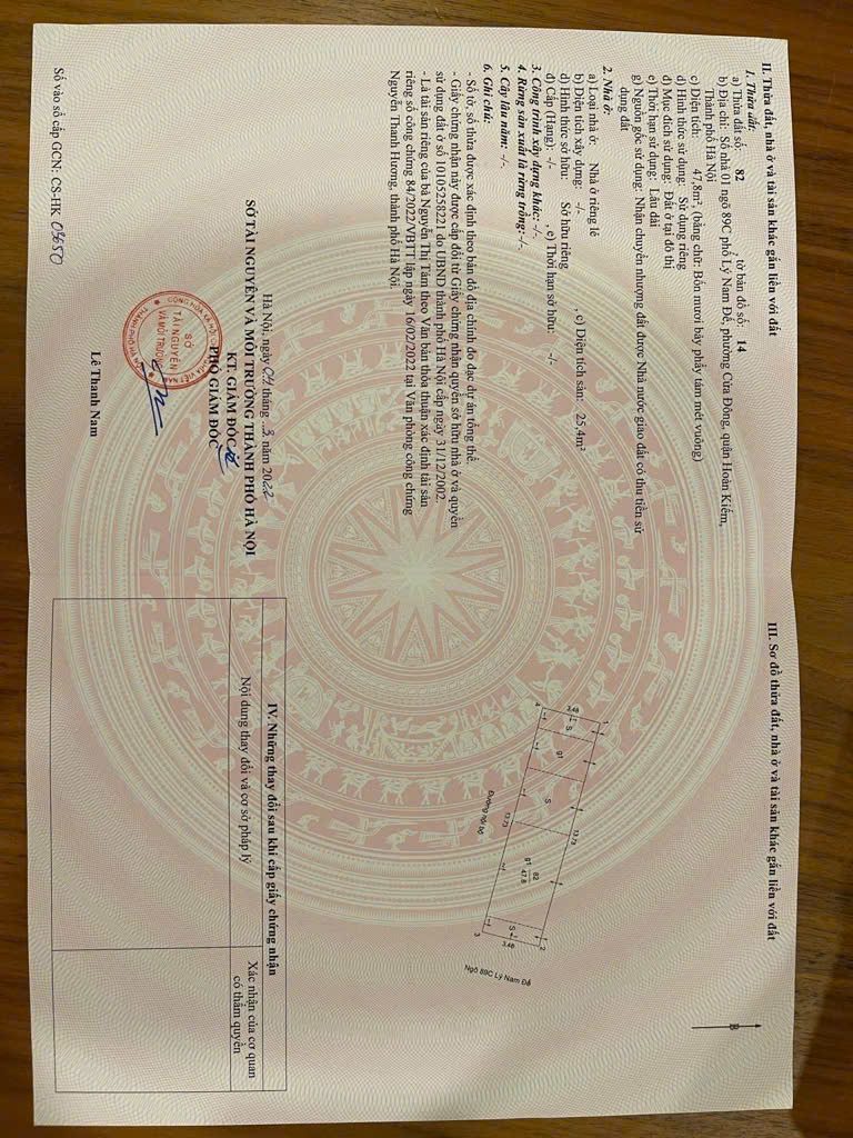 Diện tích:48 m2 sổ / thực 75 m2